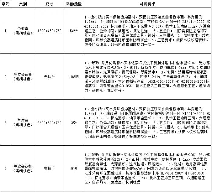 2.所报家具的款式(图片展示)、规格、材质说明及检验报告、环保证书等。