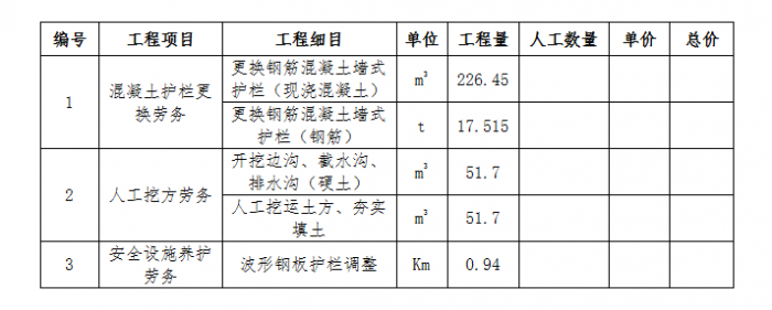 1.项目名称:中央分隔带混凝土护栏维修工程。