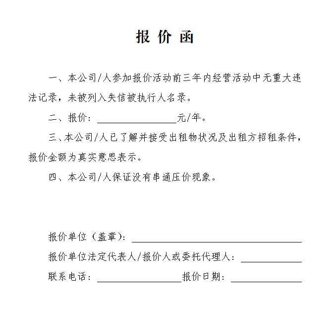 (三)报价人参与报价即视为知晓并同意出租方提出的各项招租条件。