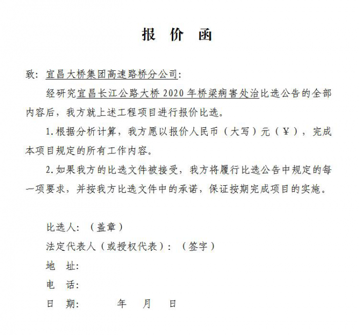 报价人在比选过程中,若发现存在不廉洁行为或不公正情况,有义务及时向宜昌大桥集团纪检部门举报,举报电话:0717-6075655、0717-6075671。