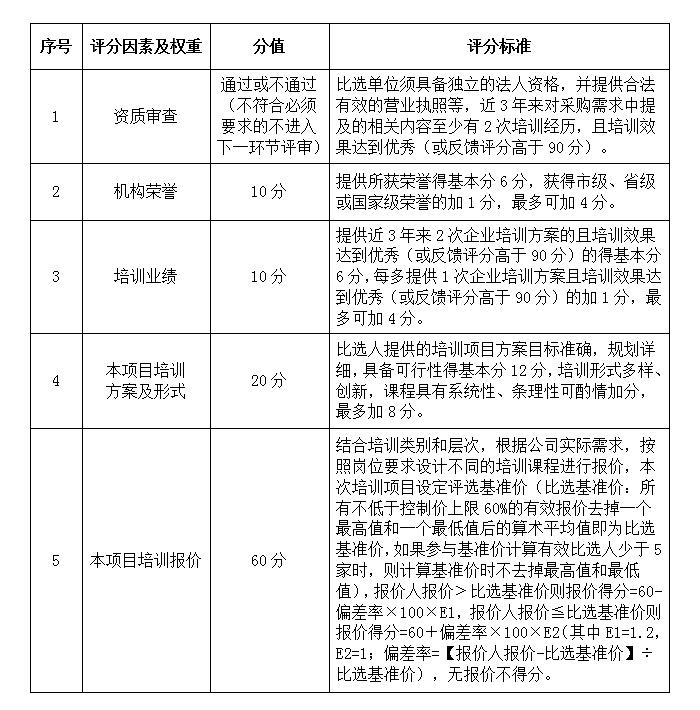 3.采购需求:普通员工培训和中、高层管理人员培训。普通员工培训内容可包括企业文化、管理理念、品德修养、业务知识等,中、高层管理人员培训内容可包括现代管理理论及国家、政府有关方针、政策、法规和领导力、执行力等。