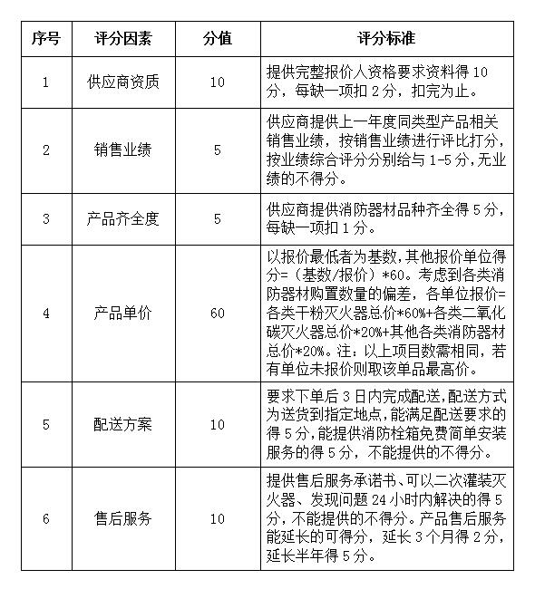 (一)评比原则:本次采购工作成立评分小组,按照商家经营规模、商家信誉、品类齐全度、单品价格、配送方案及售后服务质量等因素对各比选人进行评分议定。原则上最高得分即为中选候选人。