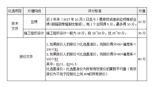 为确保宜昌长江公路大桥钢箱梁结构安全,现采用综合比选法选择施工单位承担宜昌大桥2020年钢箱梁裂纹病害处治工作。
