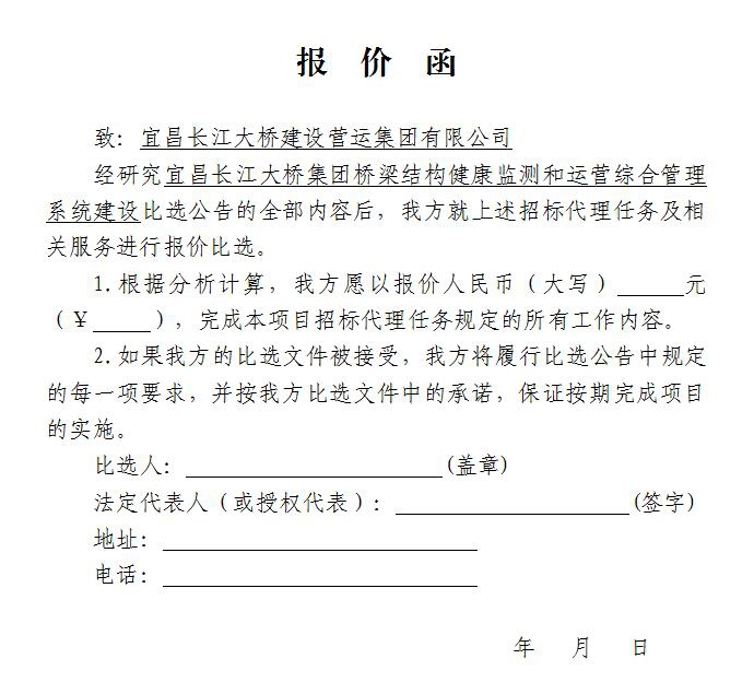 为提升桥梁管养智能化水平,经宜昌长江大桥建设营运建设集团有限公司批准,拟实施桥梁结构健康监测和运营综合管理系统建设,现公开选择项目设计施工的招标代理机构。