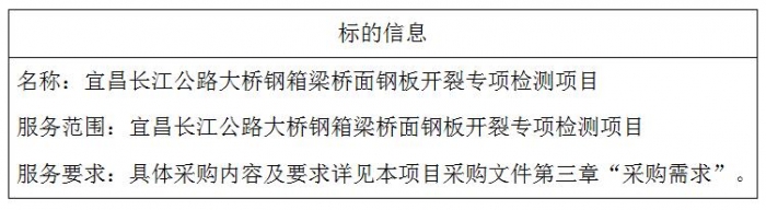 二、项目名称:宜昌长江公路大桥钢箱梁桥面钢板开裂专项检测项目