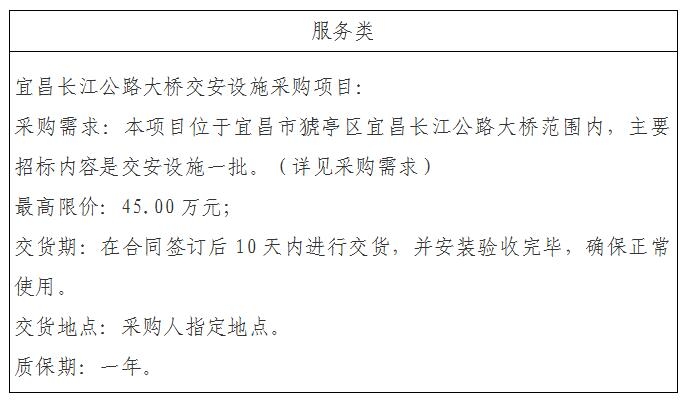 二、项目名称:宜昌长江公路大桥交安设施采购项目