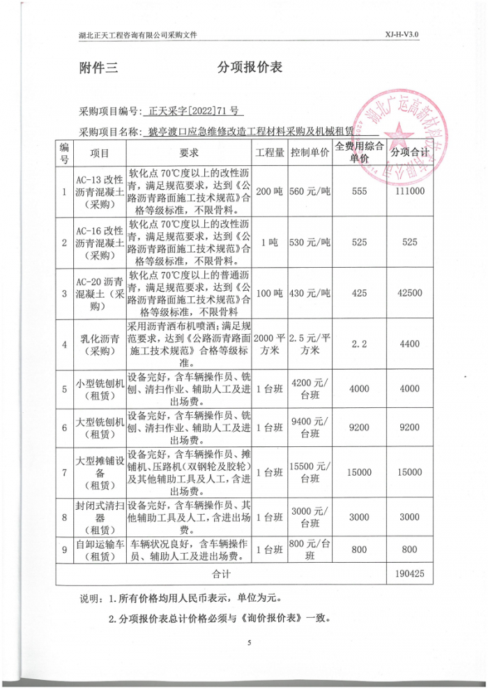 二、项目名称:猇亭渡口应急维修改造工程材料采购及机械租赁项目
