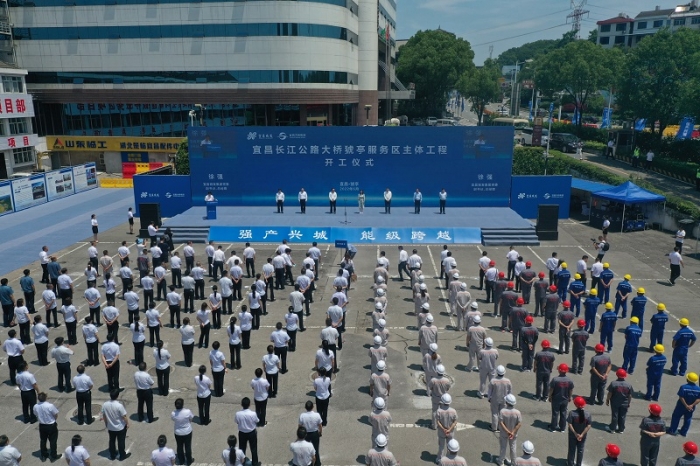 6月26日11时38分,宜昌长江公路大桥新建猇亭服务区主体工程开工仪式在猇亭举行。这标志着宜昌首个集吃、住、购、娱、玩、憩为一体的“五星级”高速公路服务区综合体正式开工建设。