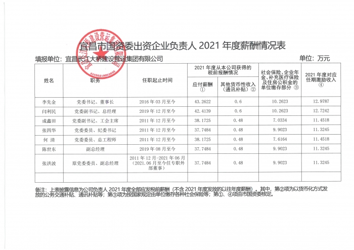 宜昌市国资委出资企业负责人2021年度薪酬情况表